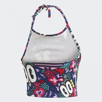 A collaboration with London-based artist Hattie Stewart, this halter top is part of the adidas Originals Galllery collection. Stewart's signature doodles come to life with a multicoloured cartoon scribble print. The cropped tank has a slim, stretchy fit.
