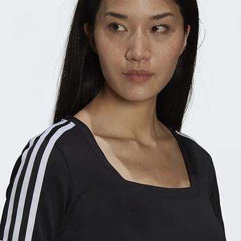 تيشيرت قصير مع ثلاث خطوط الماركة مع أكمام طويلة من اديداس بلوزه رياضية للنساء لون أحمر