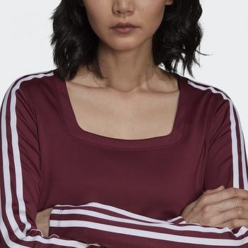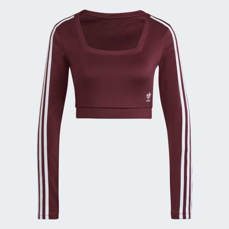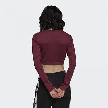 تيشيرت قصير بطباعة ثلاث خطوط مع أكمام طويلة من اديداس بلوزه رياضية للنساء لون أسود