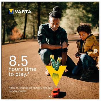 بطارية قابلة لإعادة الشحن 4000 مرة - 2600 مللي أمبير في الساعة، 1.2 AA (4 بطاريات/نفطة) بطارية قابلة لإعادة الشحن - 2600 مللي أمبير في الساعة، AA 1.2 فولت (4 بطاريات/نفطة) من إنتاج شركة Varta الألمانية المرجع IEC HR6 الحجم AAD القطر 14.5 مم الارتفاع 50.5 مم الوزن 31 الكيمياء نيكل-هيدريد معدني (NiMH) السعة 2600 مللي أمبير في الساعة، الجهد 1.2 فولت Varta