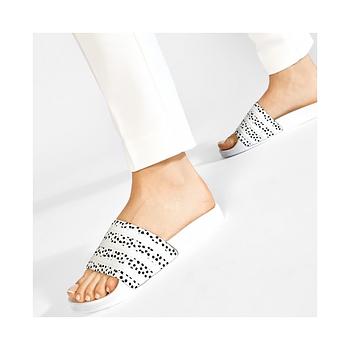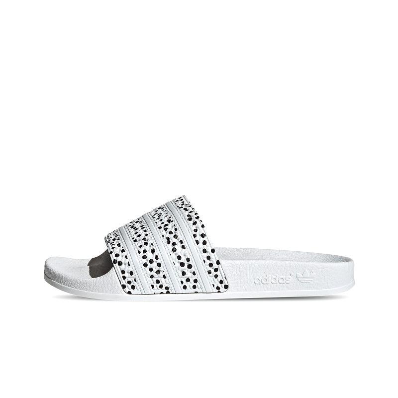 صندل أديداس أديليت النسائي - أسود وأبيض بنقشة منقّطة. الفئة المستهدفة: النساء اللواتي يبحثن عن صندل مريح وأنيق للاستخدام اليومي، سواءً بعد التمرين أو للارتداء الكاجوال. التصميم: يتميز صندل أديداس أديليت الشهير بجزء علوي أسود منقّط على خلفية بيضاء، مما يضفي لمسة عصرية على التصميم الكلاسيكي. يتميز بنعل داخلي مبطن للراحة ونعل خارجي مطاطي للثبات والمتانة. اللون: أبيض بتفاصيل سوداء، مما يجعله سهل الارتداء مع مجموعة متنوعة من الإطلالات. المناسبة: مثالي للاستخدام اليومي، سواء بعد التمرين أو على الشاطئ أو للارتداء الكاجوال. ميزات إضافية: تصميم منقّط أسود على خلفية بيضاء. نعل داخلي مبطن للراحة. نعل خارجي مطاطي للثبات والمتانة. - صندل أديداس أديليت النسائي