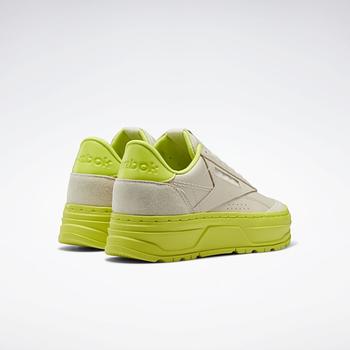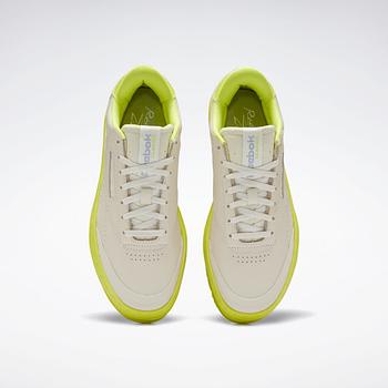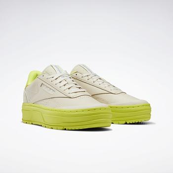 Being calm can be a radical act. So breathe deeply and lace up these women's Reebok Club C Double Geo Shoes. Stand out in an understated way with hits of contrast color on a neutral base. Don't miss subtle details like an embroidered Reebok logo with the Union Jack. A supple leather upper adds a finishing touch.