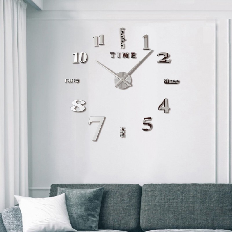 ساعة حائط اكريليك انالوج ثلاثية الأبعاد دائرية لون فضي
