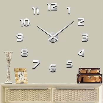 ساعة حائط اكريليك انالوج ثلاثية الأبعاد دائرية لون فضي