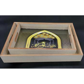 طقم صواني خشب 2 قطعة .. رمضان كريم