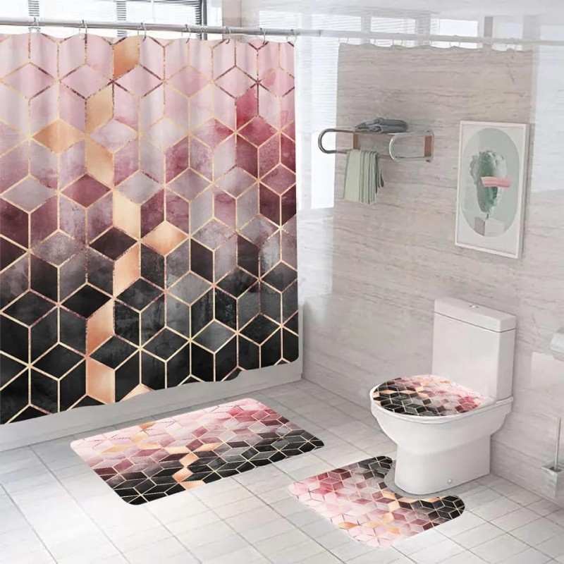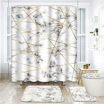 طقم حمام 4 قطع ماربل أبيض وأسود
