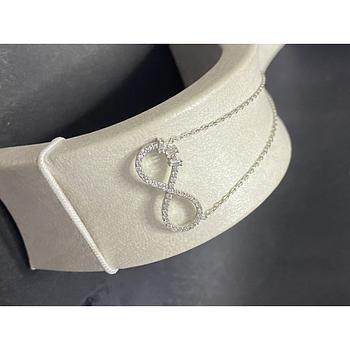 ✅ المميزات: مصنوع من الفضة عيار 925، مما يضمن المتانة والجودة العالية. تصميم الإنفينيتي المحجر يضيف لمسة من البريق والجمال، بينما الوزن الخفيف يجعله مريحًا للارتداء طوال اليوم.