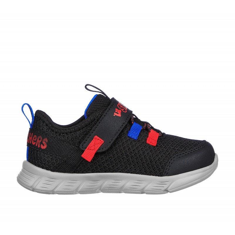 حذاء كومفي فليكس لحديثي الولادة من سكيتشرز Skechers Infants' Comfy Flex - Ruzo Shoes اجعل أطفالك يلعبون ويتقدمون براحة مع حذاء سكيتشرز كومفي فليكس للرضع . يتميز هذا الحذاء بتصميمه الرياضي المميز وخفيف الوزن بجزء علوي شبكي ومركب مع أربطة مطاطية مزخرفة وحزام مشط القدم. تفاصيل التصميم: ✅ اللون: أسود. ✅جزء علوي من شبك خفيف الوزن مع طبقات جزئية من خامة صناعية. ✅فتحات صغيرة مع نظام اربطة مطاطية وهمية. ✅سير واحد على الكاحل مع شريط لاصق (فيلكرو) للاغلاق. ✅وسادة قدم مبطنة لمزيد من الراحة ✅لسان وكعب مزودان بعروة لسهولة الارتداء والخلع. ✅نعل سفلي بتصميم مميز لمزيد من المتانة ✅تصميم مزين بشعار الماركةسكيتشرز. ✅قابل للغسيل في الغسالة الأوتوماتيكية.       Step into roomy comfort and easy-wearing style with Skechers Comfy Flex - Ruzo. This sporty lightweight design features a mesh and synthetic upper with decorative stretch laces and an instep strap. PRODUCT FEATURES ✅COLOR: BLACK/RED/BLUE. ✅ Mesh and synthetic upper with deco stretch-lace front and instep strap. ✅ Shock-absorbing midsole. ✅ Flexible traction outsole. ✅ Machine washable. ✅ Skechers® logo detail. ✅ Roomier toe box. ✅ Lightweight design. ✅ Cushioned comfort insole.