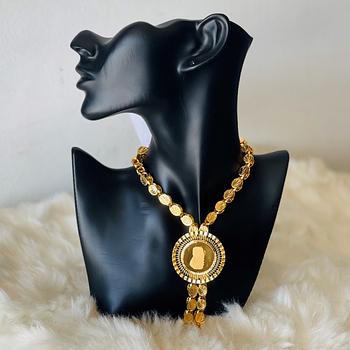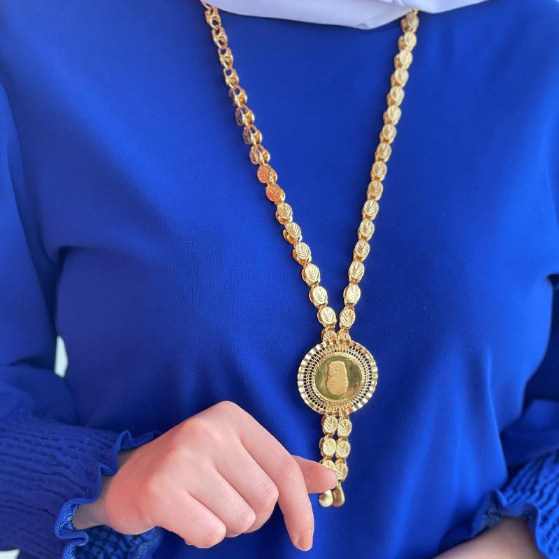 ✅ التصميم: سنسال ذهب روسي طويل مزين بحجر حلبي، يتسم بتصميم بسيط وأنيق يناسب مختلف الإطلالات.