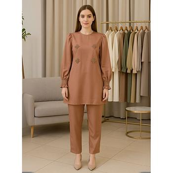 طقم مكون من قطعتين طويلتين، يوفر راحة وأناقة طوال اليوم.