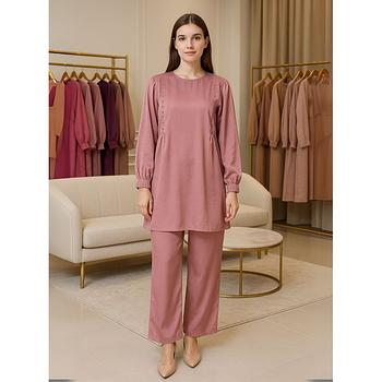 طقم مكون من قطعتين طويلتين، يوفر مظهرًا أنيقًا وراحة طوال اليوم.