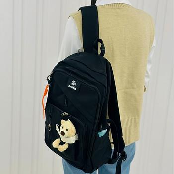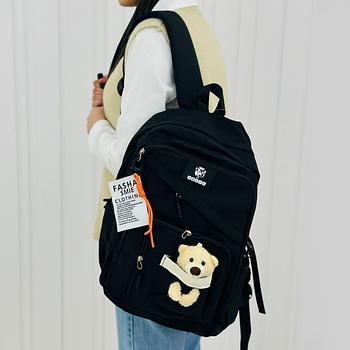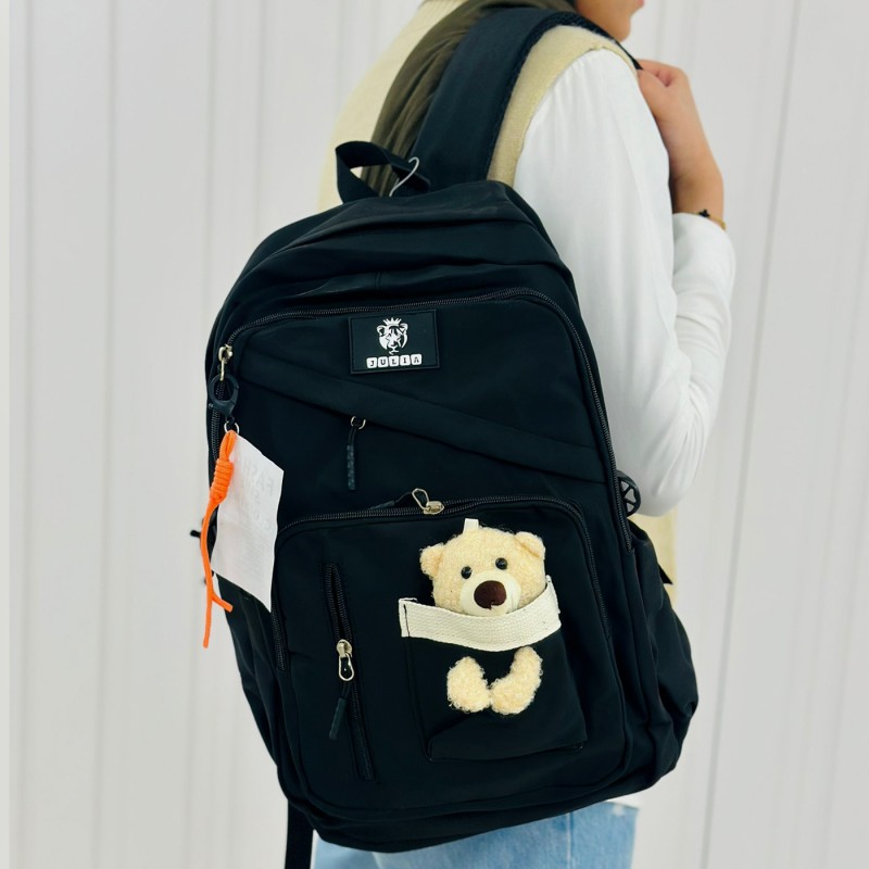 شنطة مدرسية مع دبدوب مقاس 16 انش لون أسود