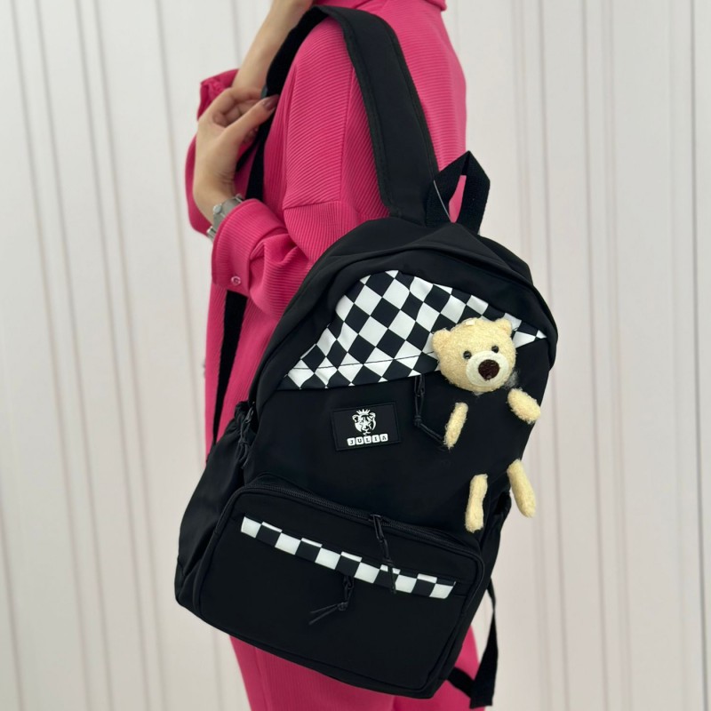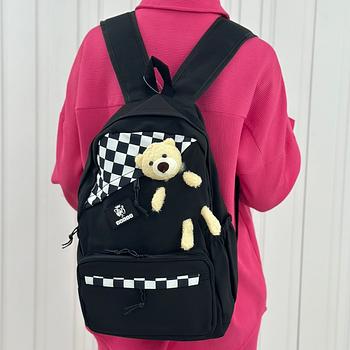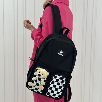 شنطة مدرسية مع دبدوب مقاس 16 انش لون أسود