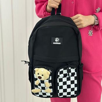 شنطة مدرسية مع دبدوب مقاس 16 انش لون أسود