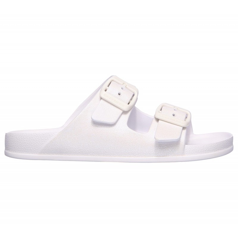 ✅ شبشب سكيتشرز كالي بلست صنشاين شيمر للنساء لون أبيض. ✅ اللون:  أبيض. ✅ الفئة: الأطفال والنساء. المميزات: ✅ نعل ايفا مريح ومتين. تفاصيل المنتج: ✅ تصميم سهل الارتداء مع شريطين علويين قابلين للتعديل ✅ نعل سفلي مطاطي مرن لثبات افضل. ✅ سهل التنظيف ولا يتلف بالماء ✅  مُزين بشعار Skechers®. - Skechers Cali Blast Sunshine Shimmer Sandal Description Keep things simple, streamlined and comfortable with the SKECHERS Foamies: Cali Blast - Sunshine Shimmer sandal. Soft smooth flexible EVA foam upper with pearlized finish in a two band casual slide sandal with adjustable buckles and contoured footbed. Details Soft smooth flexible EVA foam upper Two band slide sandal design with pearlized single color look Smooth texture design Dual adjustable buckles for comfort Nearly seamless interior for comfort Soft EVA foam sculpted footbed with SKECHERS logo heel pad Padded and contoured comfort footbed Lightweight shock absorbing midsole Flexible traction outsole Easy care material, washable with soap and water, dry in shade