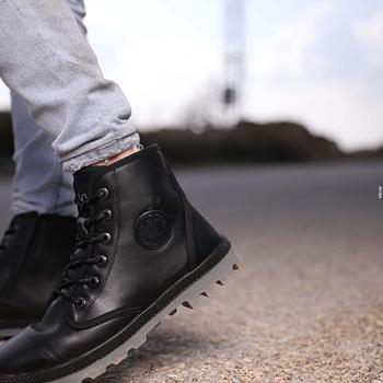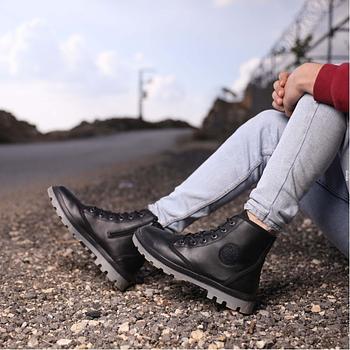 شبشب جلد طبيعي من للرجال لون عسلي ونعل أسود