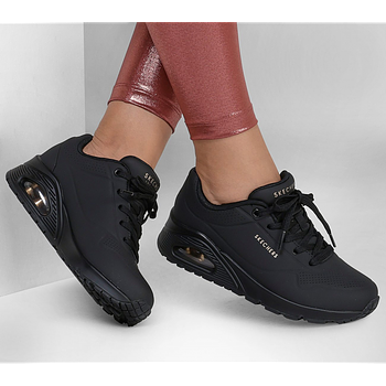 - Skechers Women's Uno - Stand On Air Wide Fit Shoe Classic air-cushioned comfort gets a fresh update in Skechers Street™ Uno - Stand on Air. This lace-up fashion style features a smooth perforated synthetic upper with an Air-Cooled Memory Foam insole, and a Skech-Air visible air-cushioned midsole. Key Features Skechers Air-Cooled Memory Foam® comfort insole Skech-Air® visible air-cushioned midsole Design Details Wedge fit with hidden 1-inch heel Smooth synthetic 'durabuck' perforated upper Flexible rubber traction outsole 1 1/2-inch heel Skechers® logo detail Product Highlights Air Cooled Memory Foam