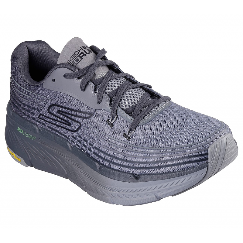Add more cushioning between you and the path with Skechers Max Cushioning Premier 2.0™ - Vivid 2.0. This lace-up running design features a sandwich mesh upper with offset printing, ULTRA GO® cushioning, a Skechers Air-Cooled Goga Mat™ insole, and a durable Goodyear® Performance Outsole.