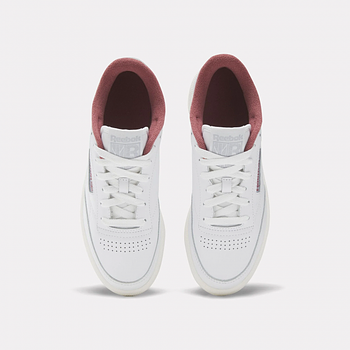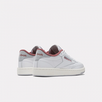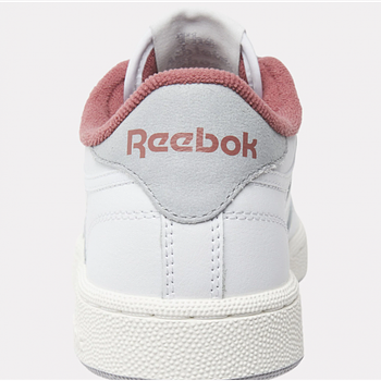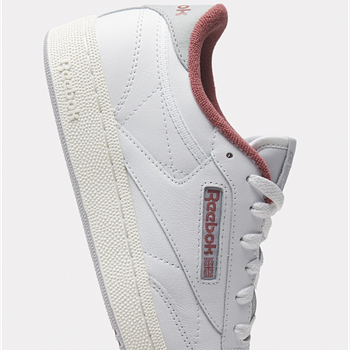 - Reebok Women's Club C 85 Shoes A RETRO SNEAKER WITH VINTAGE DETAILSJoin the club: inspired by the original Club C, the 85 pays homage to the courtside favourite with its sleek, tennis-inspired design. A red fleece lining adds a hint of colour, while the reinforced toe cap, perforation and rubber sole nod to the style’s hallmarks. White, dark red, light grey Logo print at heel panel and windowbox Padded ankle collar and tongue Moulded sockliner Logo-print tab at tongue Perforation at toe box Reinforced toe cap EVA foam midsole with embossed logo Rubber outsole Lace-up front fastening Style ID: 100033087