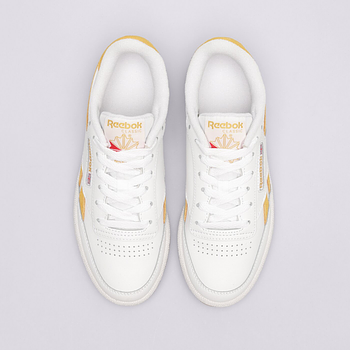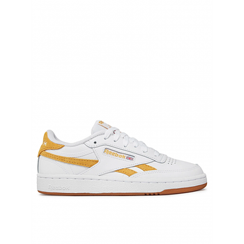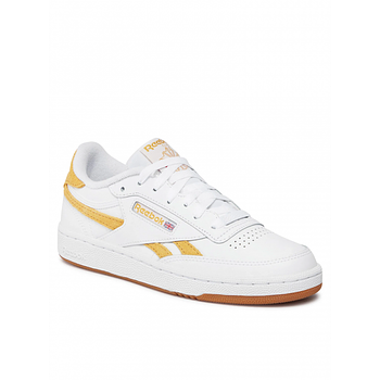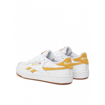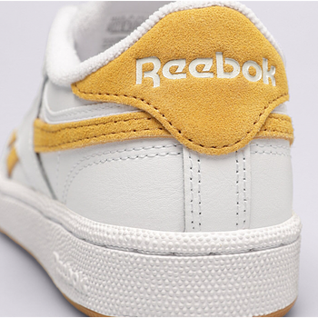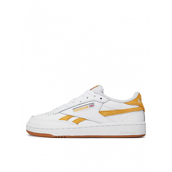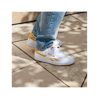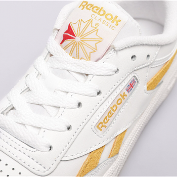 - Reebok Womens' Club C Revenge Vintage Shoes A celebration of clean, minimalist design. The Club C Revenge from Reebok features an 80s-inspired tennis style with contrasting side stripes. The high-quality upper material provides a soft, flexible feel. Lightweight cushioning and a foam insole ensure high comfort. An abrasion-resistant outsole guarantees long-lasting durability. Article Number: 100033437 Gender: Women Color: FTWR WHITE/RETRO GOLD F23-R/REEBOK Material: 30% Rubber, 70% Leather
