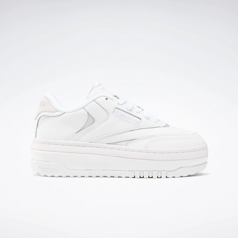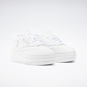 - Reebok Women's Club C Extra Shoes ICONIC SNEAKERS THAT LITERALLY LEVEL UP YOUR LOOKSet on an exaggerated platform, this stacked version of the Club C sneakers are evidence that extra is a good thing. They're subtly highlighted with light-grey accents and feature a debossed tongue and 3D tennis racket on the outsole for a signature touch. White, light pink, burgundy Leather and textile upper Logo print at heel panel and windowbox EVA foam midsole Platform rubber outsole Lace-up front fastening Style ID: 100033109