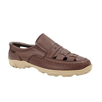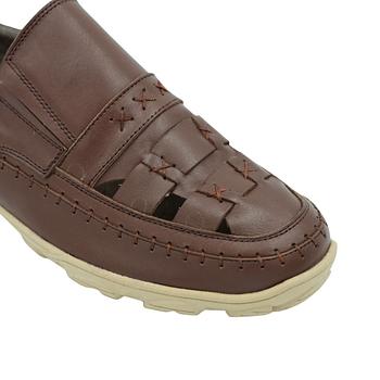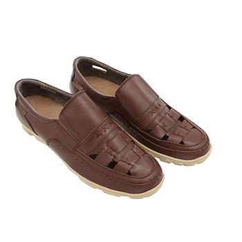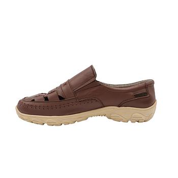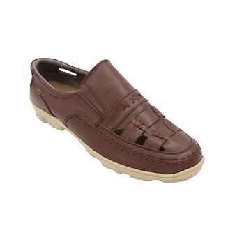 حذاء جلد طبيعي للرجال لون بني ونعل اسود