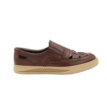 حذاء جلد طبيعي للرجال لون بني ونعل اسود