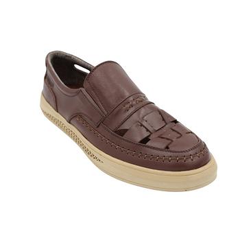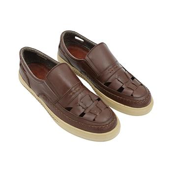 حذاء جلد طبيعي للرجال لون بني غامق ونعل بيج
