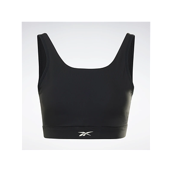 A BRA TOP MADE OF SOFT, STRETCHY JERSEY From deep binds to arm balances, this women's Reebok bra top allows you to flow freely from pose to pose. It's made of stretchy jersey, with built-in pads for extra support. The long length and square neckline provide coverage to keep you feeling confident in any workout.