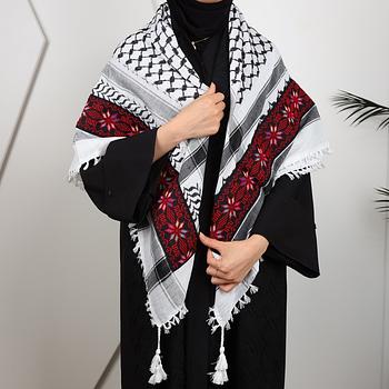 شال كوفية عريضة مع تطريز على الكامل ورد