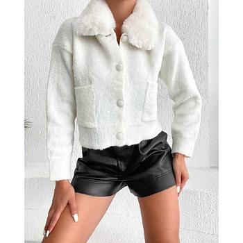 جاكيت ستاتي صوف قصير لون أبيض