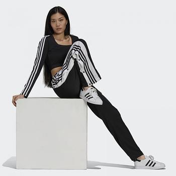 تيشيرت قصير مع ثلاث خطوط الماركة مع أكمام طويلة من اديداس بلوزه رياضية للنساء لون أحمر