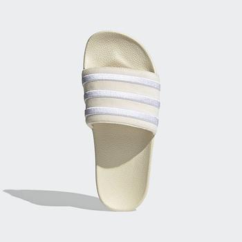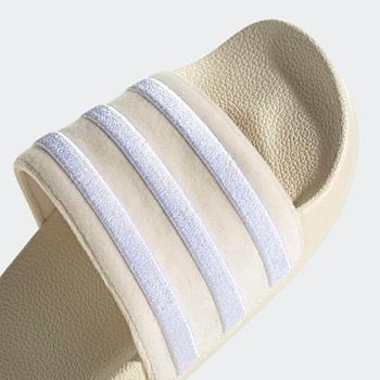 التصميم: يتميز الصندل بجزء علوي صناعي ناعم مع شعار أديداس الثلاثي الشهير، مما يمنحه مظهرًا رياضيًا وعصريًا. النعل الداخلي مبطن لتوفير راحة فائقة، والنعل الخارجي مصنوع من مادة صناعية متينة لضمان الثبات والمتانة.
