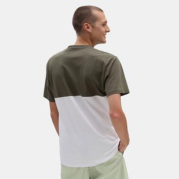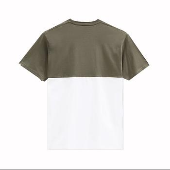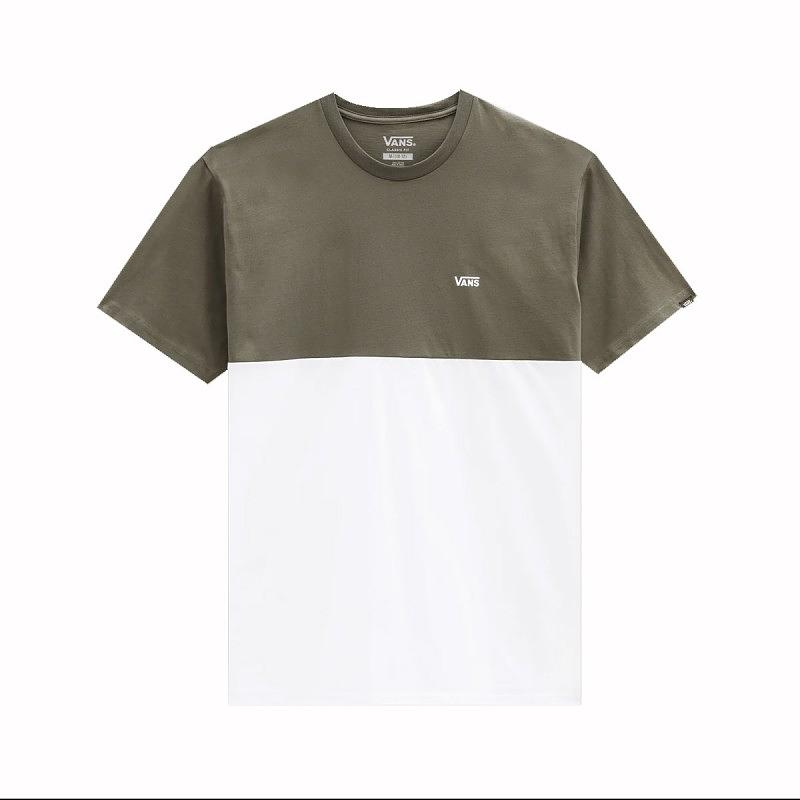 تيشيرت فانس كلر بلوك للرجال لون أبيض وزيتي فانس تي شيرت رجالي ملون بلوك تيشيرت كلاسيكي بلمسة يابانية نسيج قطن ناعم وخفيف. ياقة دائرية محززة واكمام قصير (نص كم). تصميم بتكتل للألوان نصف التيشيرت باللون الأبيض والنصف الثاني أمام الأمامية مزينة بشعار العلامة بشكل صغير. اتبع كل قطعة على تواريخ. اللون: أبيض. وزيتي نوع الياقة: ياقة مستديرة. المقاس: مقاس عادي. نوع الملابس: تيشيرت. المواد المستخدمة: قطن رقم الموديل من المورد VN0A3CZDQJS1. طرق غسيل الملابس اغسل وفقاً للتعليمات الموجودة على ملصق العناية في شركة مصنع فانز في دولة تركيا