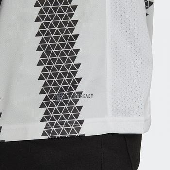 قميص أساسي JUVENTUS 22/23 قميص للمُشجّعين بتصميم مُستوحى من روح النادي ومصنوع من مواد مُعاد تدويرها. خلال تاريخهم الحافل بالإنجازات أصبحت النجوم والخطوط الثلاثة جزءاً من هوية يوفنتوس. قميص كرة القدم من أديداس هذا يجمع بين الاثنين في تصميم من رموز صغيرة شبيهة بالنجوم تشكل خطوط النادي السوداء الأسطورية. مصنوع للمُشجّعين ويجمع بين الشعور بالراحة والفخر مع تقنية AEROREADY التي تتخلّص من الرطوبة وشعار مُطرّز. مصنوع بمواد مُعاد تدويرها 100% حيث يمثل هذا المنتج أحد حلولنا للمساعدة على إنهاء النفايات البلاستيكية. قَصّة عادية ياقة دائرية مضلّعة 100% من البوليستر المزدوج الحبكة والمُعاد تدويره نسيج AEROREADY يمتصّ الرطوبة أجزاء شبكيّة على الجوانب وتحت الأذرع أطراف مضلّعة شعار يوفنتوس مُطرّز