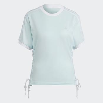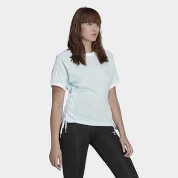 تيشيرت اولويز مع ثلاث خطوط الماركة مع نص كم من اديداس بلوزه رياضية للنساء لون أبيض