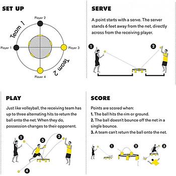 كيفية اللعب - لعبة ماشبول هي لعبة ممتعة ونشطة وإدماني على شكل كرة طائرة في الأماكن المغلقة في الهواء الطلق؛ كل فريق لديه 3 ضربات للارتداد أو شبك الكرة على الشبكة. العب بها في الفناء الخلفي أو على الشاطئ أو أينما تريد!