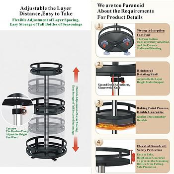 ✅تم تصميمه بزاوية 360 درجة قابلة للدورانيضمن رف القرص الدوارهذا قدرتك على تخزين جميع التوابل والعديد من مواد المخزن الأساسية الأخرى بسهولة وكفاءة.