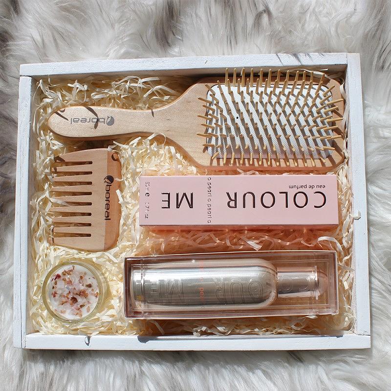 باكيج عطر colour me femme gold 100ml + مشط خشب بيضاوي+شمعة فواحة+فرشاة تدليك