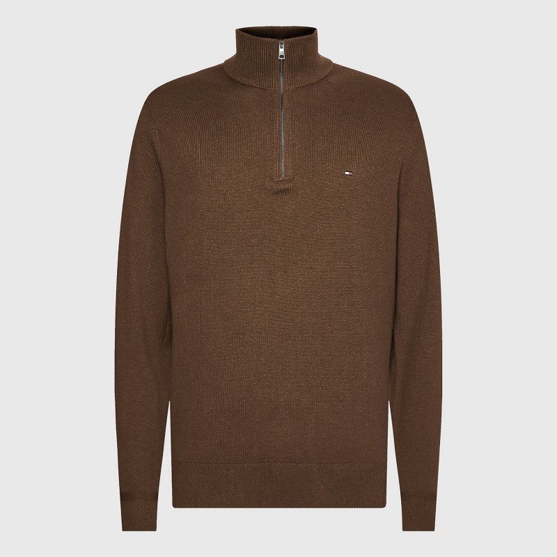 بلوزة شبابية من تومي هيلفيجر صوف ناعم DMC نصف سحاب قبة جولف لون بني
