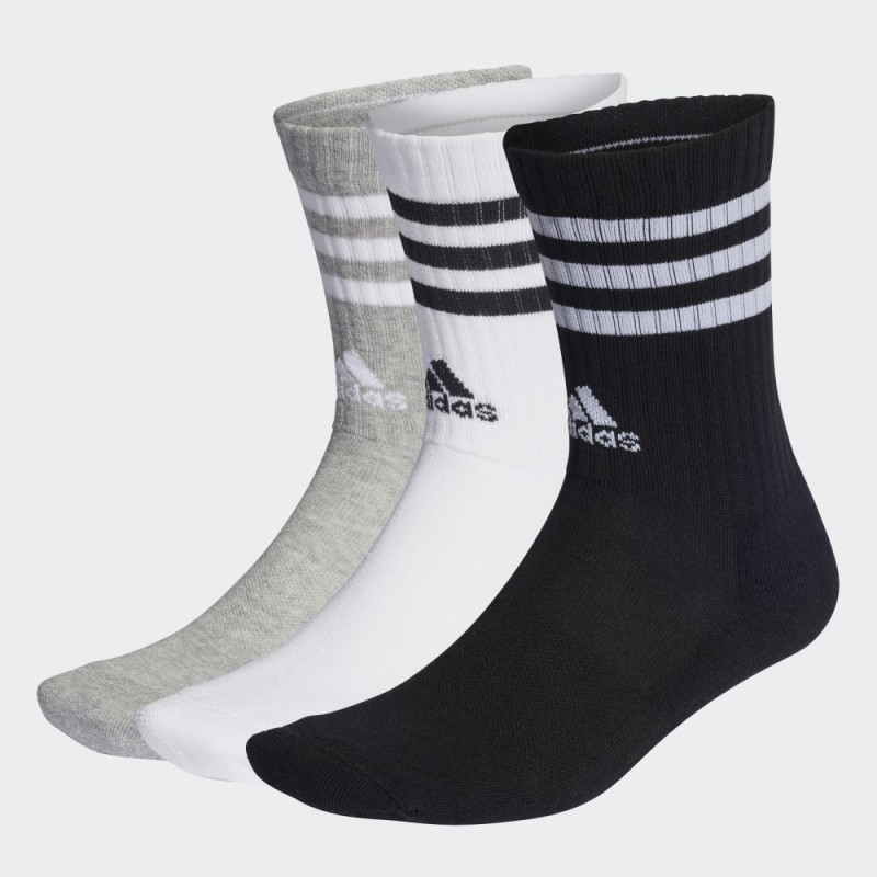 ثلاثة أزواج من جوارب adidas 3-Stripes Cushioned Crew Socks متوسطة الارتفاع جوارب كلاسيكية مصنوعة بمزيج من المواد المُتجدّدة والمُعاد تدويرها. حافظ على راحة قدميك لتشعر بالراحة في باقي جسدك. صُممت هذه الجوارب بطول متوسط من أديداس لتمنحك الراحة طوال اليوم ومصنوعة من نسيج بمزيج قطني مرن وناعم. تناسب هذه الجوارب جميع الرياضيين بفضل تصميمها المرن والداعم عند منطقة قوس القدم والتبطين عند منطقة الكعب وأصابع القدمين. 70% على الأقل من هذا المنتج هو مزيج من مواد مُتجددة ومُعاد تدويرها.. جوارب تناسب كلا الجنسين. (التصميم/الطول): تصميم متوسط الطول. (المواد المستعملة في التصنيع): 62% قطن، 36% بوليستر مُعاد تدويره، 1% إيلاستين، 1% نايلون مُعاد تدويره.