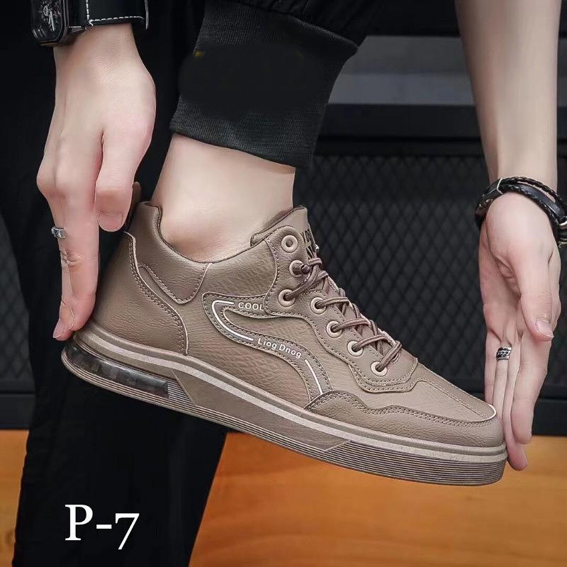 حذاء كاجوال رياضي جلد لون أسود وزيتي