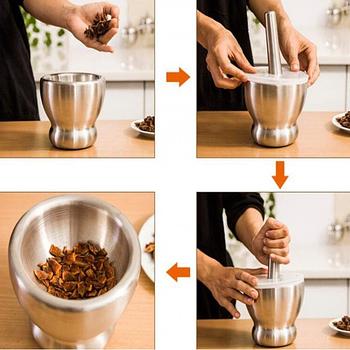 يمكن استخدام هذا الهاون للعديد من المهام في المطبخ، مثل طحن البهارات والمكسرات والتوابل. إنه خيار جيد كبديل للمطاحن الكهربائية، كما أنه يضفي طابعًا يدويًا ومنزليًا على عملية الطهي.