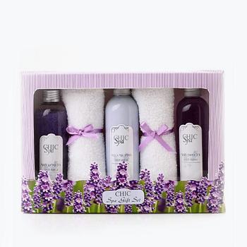 مجموعة شيك سبا برائحة اللافندر (250 مل جل تقشير + 250 مل جل استحمام + 250 مل لوشن للجسم)