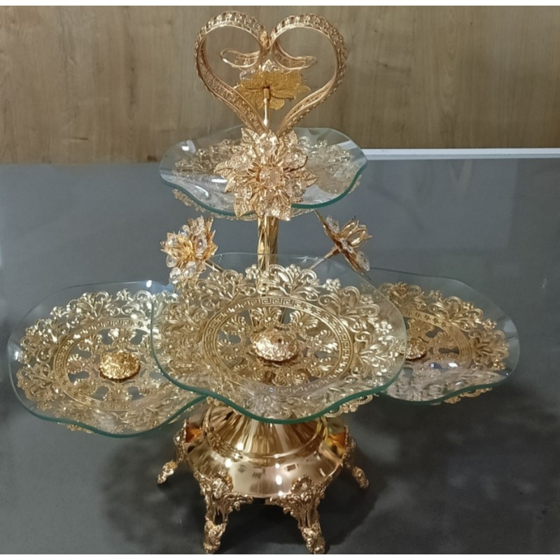 قطعة العرض الفخمة هذه ستكون إضافة رائعة لطاولة مناسبة أو حدث خاص، حيث ستضفي لمسة من الرقي والبهرجة على تقديم الحلويات والكعك. تصميمها المزخرف يجعلها قطعة ديكورية بارزة وعملية في الوقت نفسه.