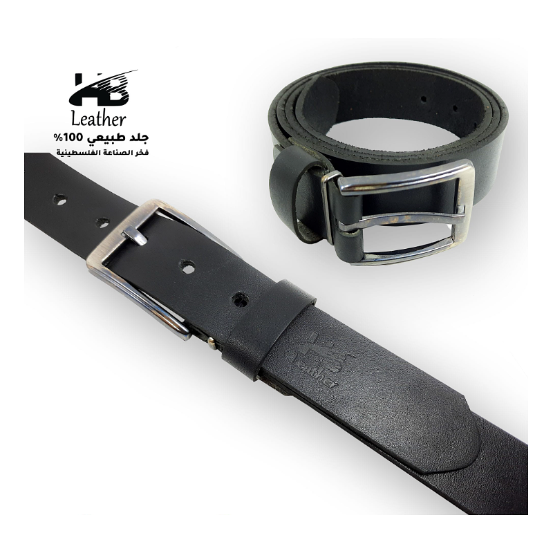 حزام رجالي جلد طبيعي عرض 3.3 لون اسود