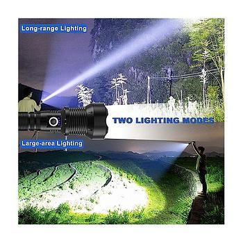 مصباح يدوي عالي السطوع مجهز بفتيل LED والذي يصل الحد الأقصى إلى 100000 لومن يعرض شعاعًا واسعًا من الضوء يضيء الأشياء بوضوح على بعد 3200 قدم مما يضيء غرفة بأكملها أو الفناء الخلفي بسهولة يمكن استخدام هذا المصباح اليدوي الأكثر سطوعًا بسهولة في مواقف مختلفة مثل التخييم أو التنزه أو حالات الطوارئ يمكن أن يدوم 8-12 ساعة بشحنة واحدة يتميز مصباح الطوارئ هذا بتصميم محكم مقاوم للماء ويمكن استخدامها في الطقس القاسي مثل المطر