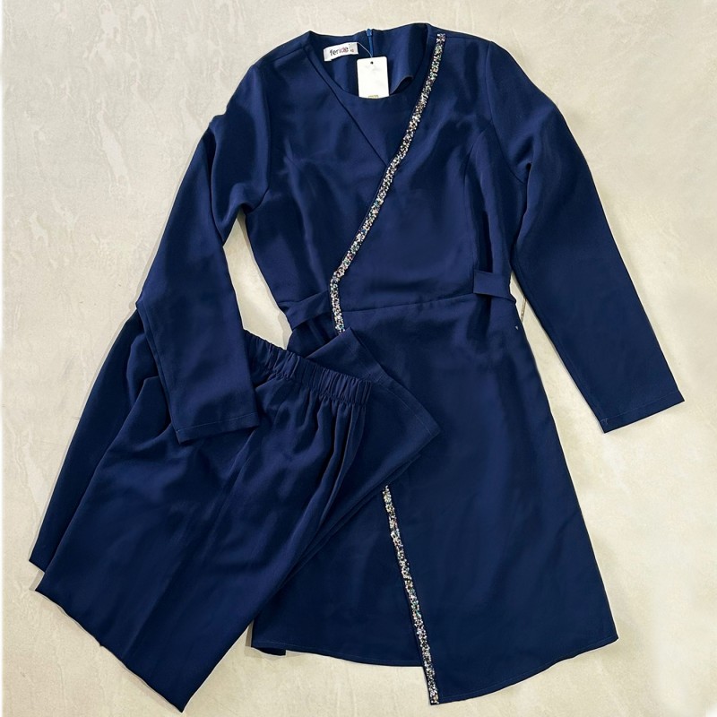 ✅ الفئة المستهدفة: للنساء اللواتي يبحثن عن طقم أنيق وراقي للمناسبات الرسمية أو اليومية.✅ التصميم: طقم ستايل طويل مكون من قطعتين، تصميم عصري وأنيق.✅ اللون: كحلي، لون كلاسيكي وأنيق يعكس الرقي.✅ المميزات: