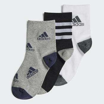 أضف لمسة من المرح إلى درج الجوارب الخاص بطفلك. سواء كان ينزلق حافي القدمين على أرضية المنزل أو يركض في الحديقة مع الأصدقاء، توفر جوارب أديداس هذه الراحة والألوان الحيوية في آنٍ واحد. القطن الناعم يمنح إحساساً مريحاً طوال اليوم. يحتوي هذا المنتج على ما لا يقل عن 50% من مزيج المواد المعاد تدويرها والمتجددة.