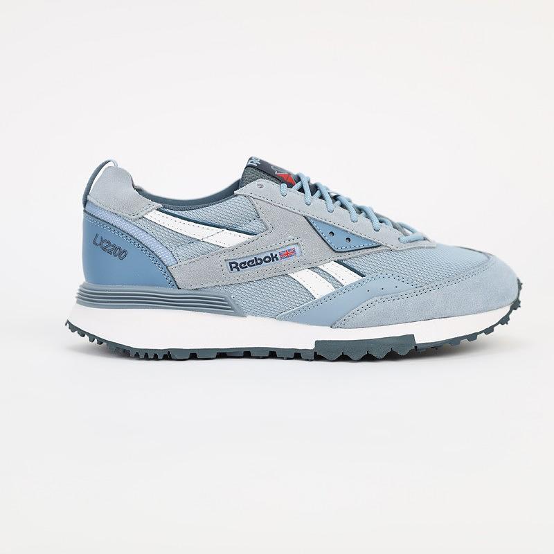 - Reebok Mens' LX2200 Casual Shoes Sharp lines and rugged edges combine to give you a look that says you're legit. These REEBOK LX2200 Unisex Casual Shoes borrow their design aesthetic from the archives, but are served up fresh for today. Choose between classic hues or add a pop of collegiate-inspired color. Vintage logos seal the deal. Leather upper with suede overlays and textile underlays Lace closure EVA midsole Textile lining Rubber outsole Reebok shoes Model: IE0006 Color: Light Blue. Made In China